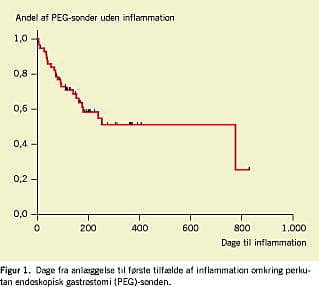 Årsagen til, at PEG-sonden hos 25 børn ikke blev skiftet til en knapsonde som anbefalet, kendes ikke i denne retrospektive opgørelse. Der var imidlertid ingen forskel i komplikationsrate eller -type hos børn med henholdsvis PEG- og knapsonder. Der er færre komplikationer ved anvendelse af en nasogastrisk sonde, men dette var forsøgt i de fleste tilfælde og var ikke en holdbar løsning. Selv om otte af PEG-sonderne måtte fjernes, og selv om anvendelsen var forbundet med i alt 48 tilfælde af inflammation, der nødvendiggjorde indlæggelse og intravenøs antibiotikabehandling, anser vi alligevel anvendelsen af PEG-sonder for at være sikker og effektiv. PEG-sonden kan anbefales, hvis der er behov for længerevarende ernæringsterapi hos børn med cancer, og anvendelse af nasogastrisk sonde ikke er gennemførlig.
