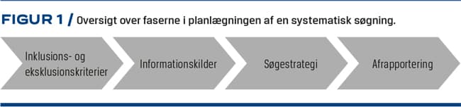 Denne artikel bidrager med et overblik over metoder og værktøjer til planlægning af faserne i en systematisk søgning med udgangspunkt i eksisterende anbefalinger (Figur 1).