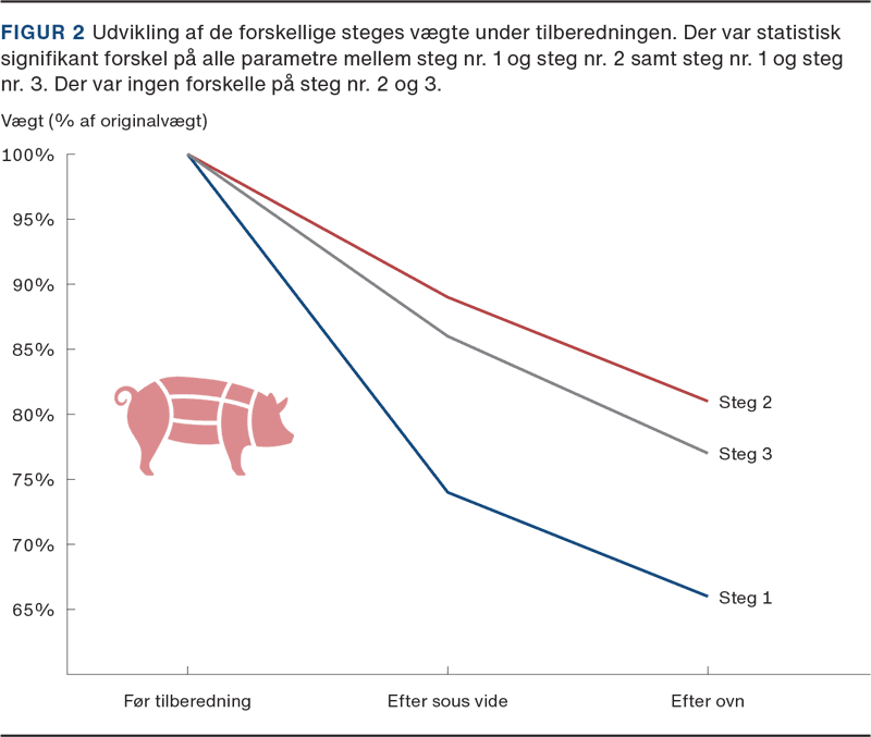 Stegene blev vejet både før tilberedning og mellem de enkelte trin af tilberedningen.