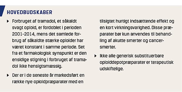I det efterfølgende vil der blive fokuseret på de farmakologiske konsekvenser af stigningen i tramadolforbruget og på, hvordan ændringer i forbruget af de stærke opioider påvirker misbrug og giver anledning til potentielle utilsigtede hændelser som følge af generisk substitution.
