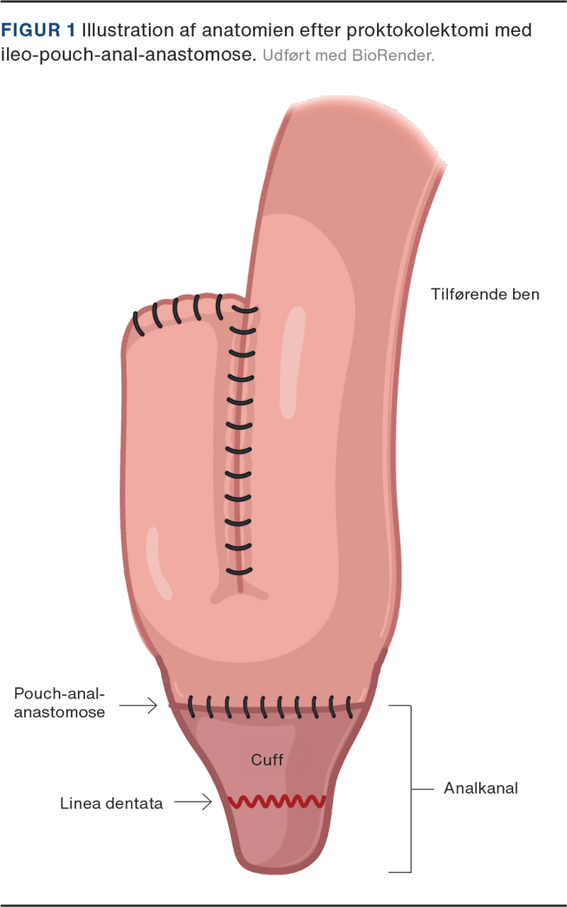 CU er en kronisk inflammatorisk tarmsygdom, der er lokaliseret i tarmmukosa og strækker sig i varierende grad fra den anale del af rectum til ileocøkalstedet. Til trods for ny medicinsk behandling har en stor del af disse patienter fortsat behov for kirurgi, som oftest består i proktokolektomi med IPAA [3]. Prævalensen af CU er fordoblet over en 20-årig periode [4], og vi har i Danmark således flere tusinde patienter med CU med pouch.