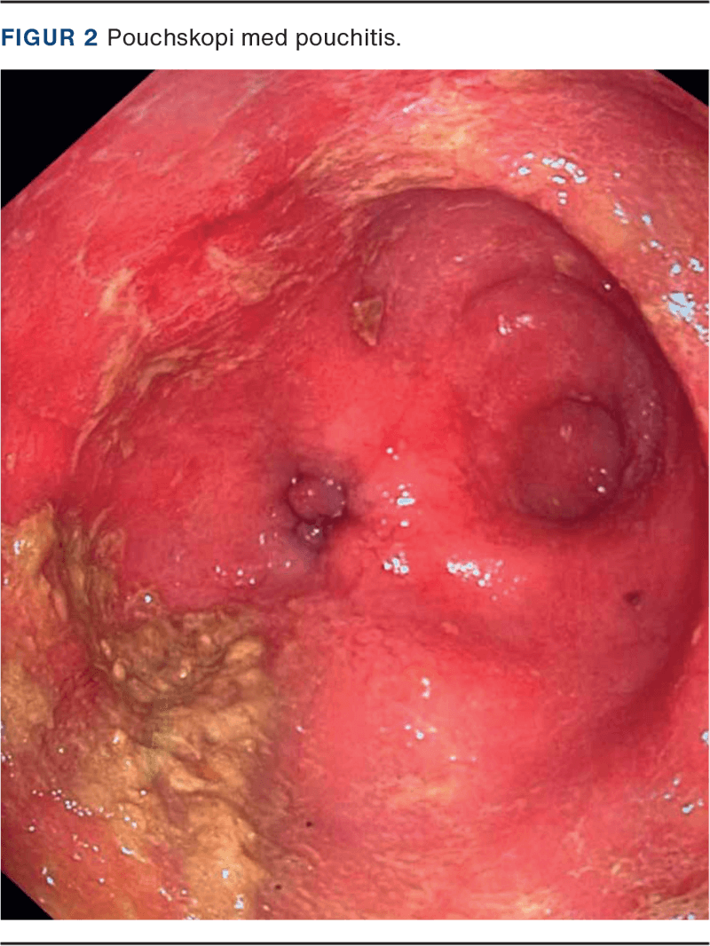 Patienter med en rask pouch har som hovedregel 4-8 afføringer pr. døgn, er kontinente og lider ikke af imperiøsitet. Typiske symptomer på pouchitis omfatter øget afføringshyppighed, abdominalsmerter, feber, tynde afføringer evt. med blod, imperiøsitet, inkontinens og feber [3, 11]. Symptomerne kan dog være forårsaget af andre tilstande. De væsentligste differentialdiagnoser er infektiøs tarmbetændelse (herunder CDI og CMV) [12, 13], cuffitis (betændelse i øverste del af analkanalen), irritabel pouchsyndrom, stenose, morbus Crohn og analfistel/sinus. Det kræver således en kombination af endoskopi, biopsi, mikrobiologiske undersøgelser og evt. MR-skanning at stille diagnosen.
