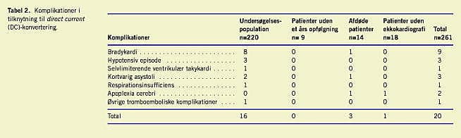 Komplikationer i tilknytning til DC-konvertering forekom hos 7,7% af patienterne (20 patienter ud af undersøgelsesperiodens 261 DC-konverterede patienter) (Tabel 2 ).