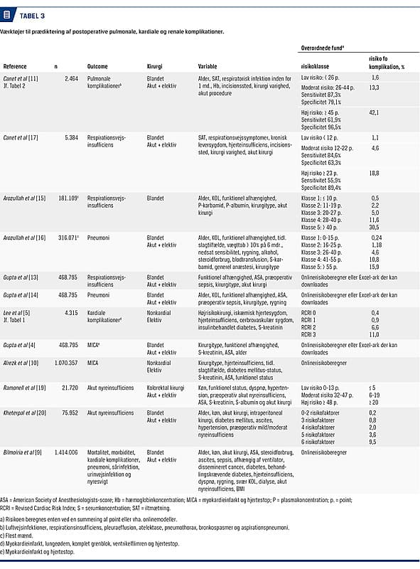 en onlineprædiktionsmodel [9, 11, 13-17] (Tabel 3