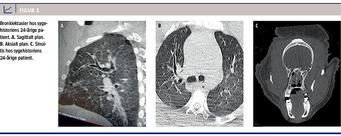 En 22-årig herre, der havde haft recidiverende øvre og nedre luftvejs-infektioner gennem flere år, blev henvist til videre udredning. Patienten havde daglig hoste, hvæsende vejrtrækning samt dagligt næseflåd og havde gennem de seneste år været uarbejdsdygtig.