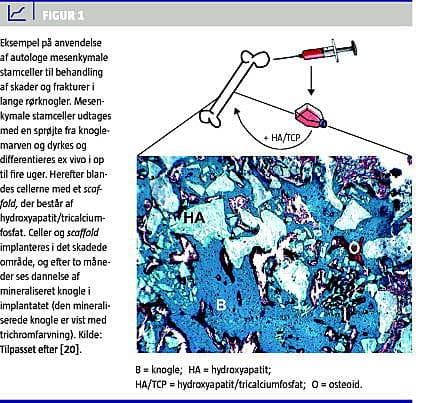 Til behandling af knogle- og bruskrelaterede lidelser er de mest interessante stamceller de såkaldte mesenkymale stamceller (MSC), som kan differentieres til bindevævsceller såsom osteoblaster, kondrocytter og adipocytter [1].