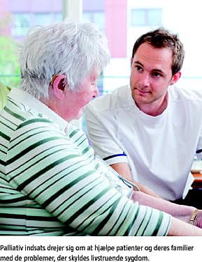 Palliativ indsats har til formål at hjælpe patienter og deres familier med de problemer, der skyldes livstruende sygdom. Problemerne kan være af fysisk, psykisk, social, åndelig og eksistentiel karakter [1].