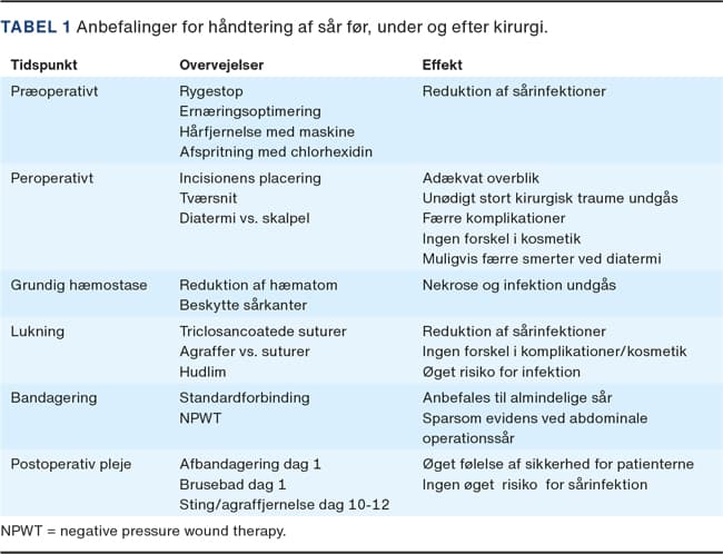 Formålet med denne artikel er at gennemgå den aktuelle evidens og anbefalinger for håndtering af operationssår før, under og efter operationen.