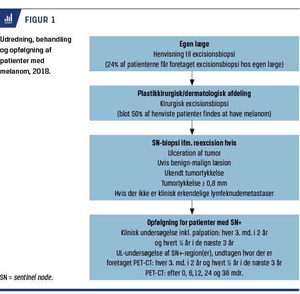 Hos patienter med en ikke ubetydelig risiko for spredning til regionale drænerende lymfeknuder anbefales SN-biopsi [10]. Denne gruppe omfatter jf. internationale og nationale guidelines alle patienter med melanom med en tykkelse på ≥ 0,8 mm, med ulceration