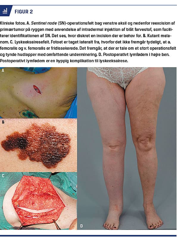 Morbiditeten ved lymfeknudeeksairese er omfattende: dels er der stor risiko for komplikationer i form af langvarig sekretion af lymfevæske (serom), hvilket nødvendiggør langvarig drænbehandling og/eller hyppige punkturer i op til måneder efter indgrebet, dels er der en betragtelig risiko for lymfødem ved denne procedure [3, 6]. I et nyligt publiceret dansk studie, som omhandler helbredsrelateret livskvalitet efter lymfeknudekirurgi hos melanompatienter med melanom