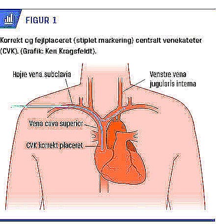 CVK anvendes hyppigt i klinikken, men det er ikke uden risici og udfordringer, hvilket denne sygehistorie viser. Der er berørt tre væsentlige problemstillinger. Den første er fejlplaceringen af CVK, den anden er komplikationerne som følge af CVK, og den tredje er den manglende konsekvens af en patients vedvarende klager.