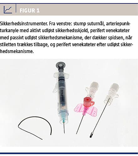 Sikkerhedsinstrumenter kan defineres som skarpe instrumenter med en integreret sikkerhedsmekanisme, der er designet til at afskærme nålen eller den skarpe del af instrumentet efter brug [12]. Der skelnes mellem »aktive instrumenter«, som kræver en aktiv handling for at sikkerhedsmekanismen bliver udløst, og »passive instrumenter« hvor sikkerhedsmekanismen udløses automatisk under brug.