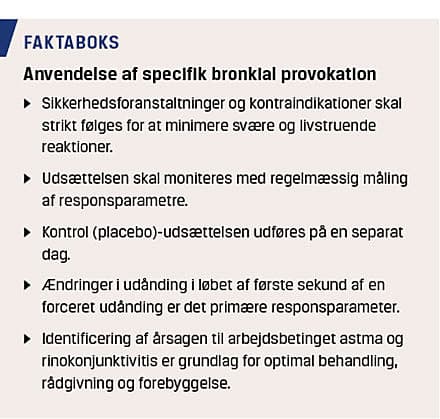 En arbejdsgruppe under Det Europæiske Lungeselskab har samlet erfaringer fra de største internationale centre [4, 6, 7]. I denne artikel præsenteres specifik provokation, som nu kan udføres i Danmark.