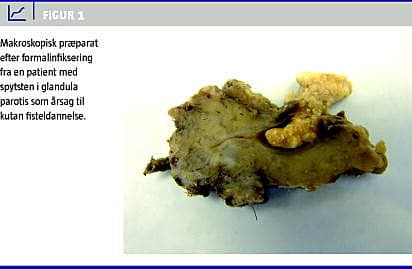 Der præsenteres her et tilfælde af sten i glandula parotis med kutan fisteldannelse.