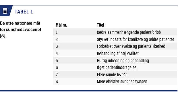5. Sundheds- og Ældreministeriet, Danske Regioner, KL. Nationale mål for sundhedsvæsnet. www.sum.dk/Temaer/~/media/Filer%20-%20Publikationer_i_pdf/2016/Nationale-maal/SUM-Nationale-maal-L-april-2016.ashx. 2016 (4. jan 2018).