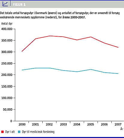 Antallet af forsøgsdyr i Danmark har altså ikke ændret sig mærkbart siden år 2000, hverken det totale antal forsøgsdyr eller det antal, der bliver brugt til forskning i menneskets sygdomme. Dette synes umiddelbart at gå imod bestræbelserne på at reducere antallet af forsøgsdyr mest muligt.