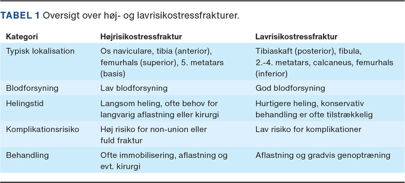 Forståelse for stressfrakturer (SF) er afgørende, da disse skader udgør ca. 10% af alle sportsrelaterede knoglelidelser [1, 2]. Skaderne forekommer overvejende blandt individer, der udøver repetitiv og højintensiv træning, såsom atleter og militært personel. Derudover er kvinder særligt disponeret til SF. Bortset fra gentagen mekanisk belastning skyldes den højere forekomst et samspil mellem utilstrækkeligt kalorieindtag, hormonelle forstyrrelser og lav knogletæthed (BMD): relative energy deficiency in sport (RED-S) [3].