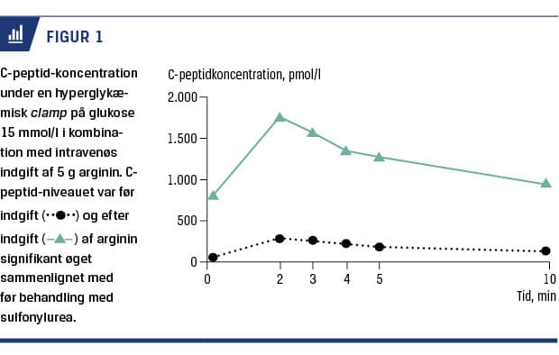 SU-behandling sammenlignet med før behandlingen. Således blev den maksimale C-peptid-koncentration under arginintesten seksfold øget ved SU-behandling.