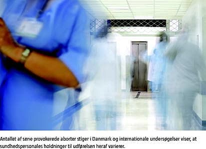 Summary Different attitudes among health-care professionals to late termination of pregnancy - a systematic review Ugeskr Læger 2012;174(16):1084-1088 International studies show that late termination of pregnancy causes more distress for the health-care professionals than early termination of pregnancy. The most commonly cited concern is the risk that the fetus will show signs of life after the abortion. Studies indicate that the cause of abortion, religious beliefs and profession influence the attitudes. The number of late terminations of pregnancy is increasing as the methods for prenatal diagnostics develop. As a result there is a need for research on Danish health-care professionals' attitudes towards late termination of pregnancy.