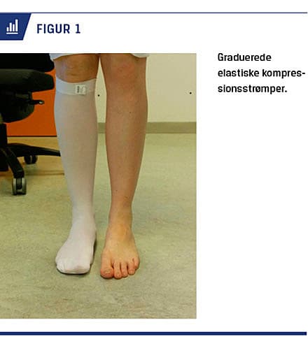 På de kirurgiske afdelinger i Danmark anvendes en kombination af farmakologiske og mekaniske midler, sidstnævnte hovedsageligt i form af graduerede elastiske kompressionsstrømper (GECS) (Figur 1).