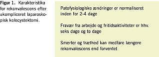 Sammenfattende er de fleste patofysiologiske ændringer normaliseret inden for de første 2-4 dage efter laparoskopisk kolecystektomi (Tabel 1).