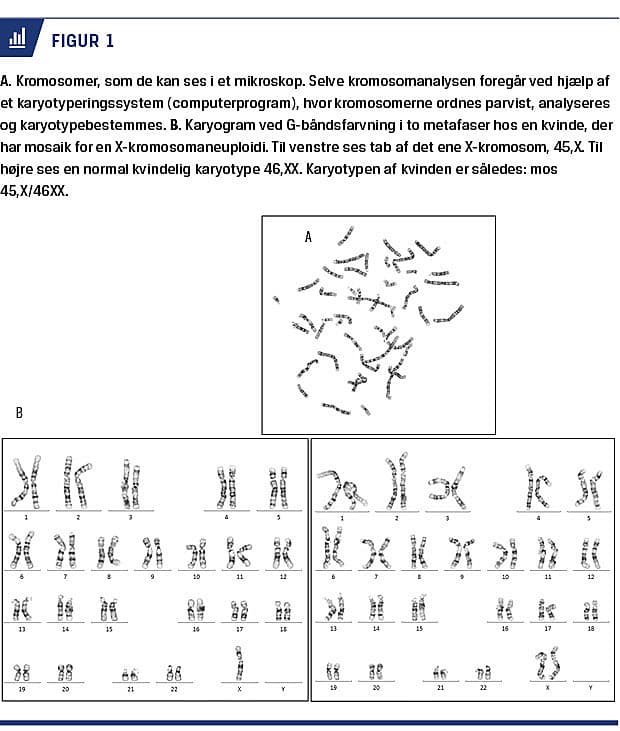 I Danmark udføres der flere tusind kromosomanalyser hvert år. En standardkromosomanalyse omfatter dyrkning af celler for at opnå et tilstrækkeligt antal, hvor kromosomerne er i den rette delingsfase (metafase). Derefter kan kromosomerne identificeres i mikroskopet ud fra deres størrelse og båndmønster, såkaldt karyotypering (Figur 1). Indikationerne for en kromosomanalyse er talrige, og omfatter blandt andet mistanke om kendte kromosomafvigelser (f.eks. trisomi 21, Turners syndrom og Klinefelters syndrom), abortus habitualis og infertilitet. Selvom der fortsat udføres mange kromosomanalyser, er antallet faldende. Det skyldes i høj grad, at mikro-array er førstevalget ved genetisk udredning for f.eks. forsinket psykomotorisk udvikling og/eller dysmorfi, samt at det bliver brugt hyppigere i forbindelse med