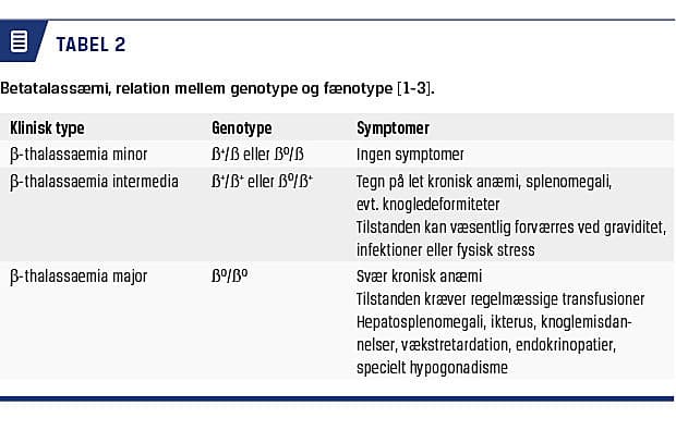 Afhængigt af antallet og karakteren af mutationerne kan det kliniske billede variere fra ingen symptomer til svær kronisk transfusionskrævende hæmolytisk anæmi (Tabel 2).