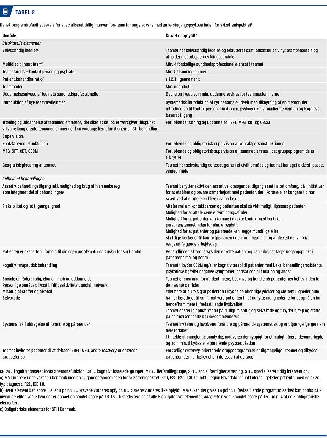 For at sikre kvaliteten i OPUS-behandlingen på landsplan er der udviklet et programtrofasthedsmål for at dække og evaluere struktur og indhold af den behandling, der gives i landets OPUS-team (eller tidlig intervention-team) i forhold til specifikke kvalitetskrav. Der er gennemført en undersøgelse i 22 danske team, hvoraf 59% havde tilfredsstillende programtrofasthed