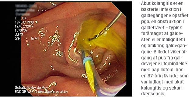 Akut kolangitis (AK) er en alvorlig tilstand med bakteriel infektion i galdegangene, opstået pga. en obstruktion i galdetræet. Ubehandlet kan infektionen resultere i sepsis og organsvigt. AK kræver hurtig behandling, da dødeligheden er høj – op til 10% på trods af retmæssig behandling [1, 2] og over 50% uden [3, 4].