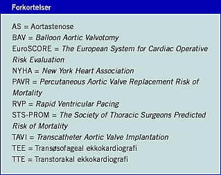 Aortastenose (AS) er den hyppigste form for hjerteklaplidelse hos voksne, og ved fremskreden sygdom medfører AS betydende morbiditet og mortalitet [1]. Prævalensen af degenerativ AS er 2-7% blandt personer over 65 år i USA, hvilket skønnes at være på samme niveau som danske tal [2].