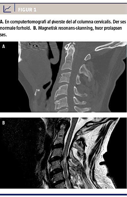 Cervikal diskusprolaps’ ætiologi er degenerativ, men prolapsen kan opstå akut ved et traume [1, 2]. Traumatisk cervikal diskus prolaps (TCDP) er sjælden, men vigtig at have kendskab til, da det kan få alvorlige følger at overse den.