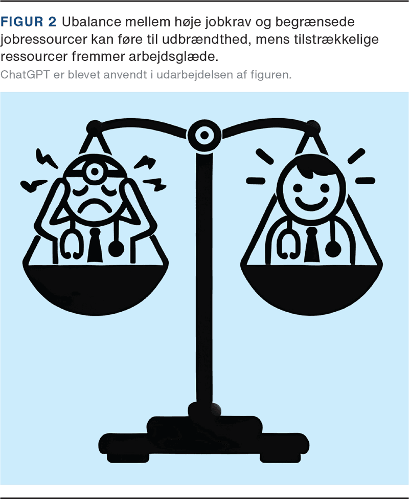 Vedvarende ubalance, hvor jobkravene overstiger jobressourcerne, vil for de fleste medarbejdere med tiden resultere i udbrændthed, jf. Figur 1. I Danmark har undersøgelser blandt praktiserende læger fra 2023 vist, at 48% havde moderat og 14% svær udbrændthed [22]. Blandt de danske karkirurger rapporterede mere end 80% udbrændthed i 2020, hvoraf 28% var moderat til svær [23].