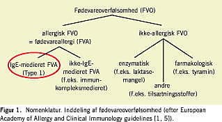 Unormale og uhensigtsmæssige reaktioner på fødevarer benævnes fødevareoverfølsomhed og underinddeles afhængigt af, om en tilgrundliggende immunologisk mekanisme (fødevareallergi) kan påvises eller ej [1,2] (Figur 1 ).