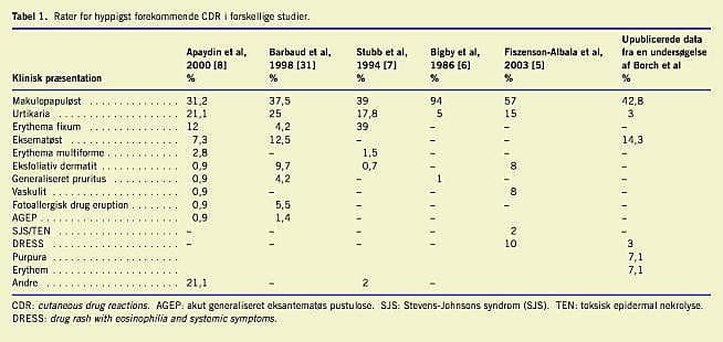 CDR kan efterligne alle kendte hudsygdomme. Raten af de forskellige diagnoser varierer studierne imellem (Tabel 1) [4-8].