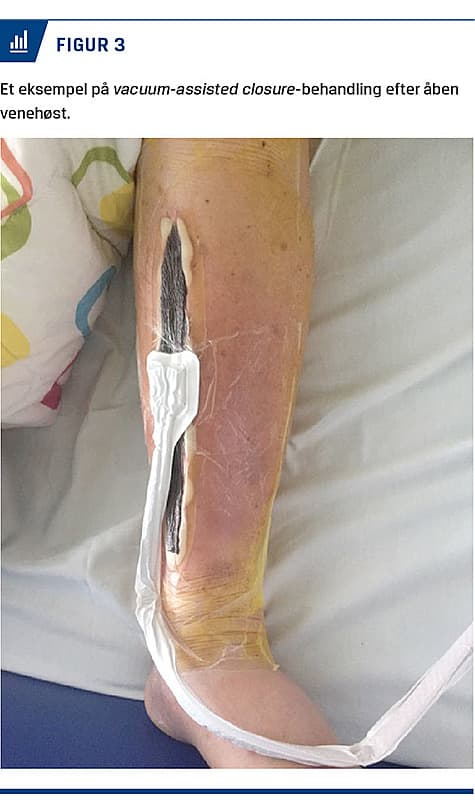 Derudover er NTSVH forbundet med en høj risiko for benkomplikationer, hvor op mod 18% af patienterne behandles med vacuum-assisted closure (Figur 3) eller intravenøst givet antibiotika, mens dette er tilfældet hos 2% af patienterne, hos hvem man havde anvendt EVH (p < 0,001) [27].