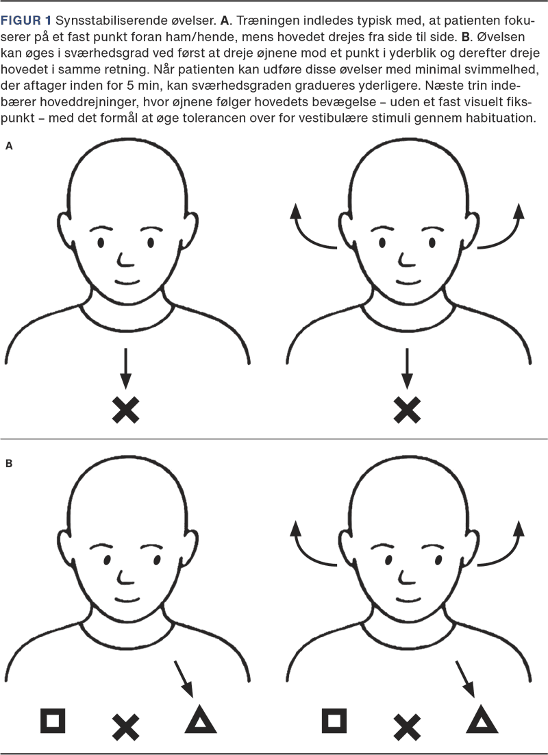 Rehabilitering bør bestå af daglige blik- og balanceøvelser (10-20 min fordelt på flere sessioner), helst under supervision og med supplerende skriftligt materiale eller instruktionsvideoer [7, 8].